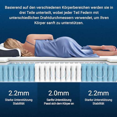 【Genießen Sie einen ruhigen Schlaf】Die Avenco-Matratze begrenzt das Hüpfen und absorbiert Störungen durch Bewegungen zwischen Partnern mit individuell eingebetteten Federn, was bedeutet, dass Sie nicht gestört werden, wenn Ihr Partner sich umdreht oder aufsteht; Mit einer Avenco-Einzelbettmatratze haben Sie einen ruhigen und erholsamen Schlaf