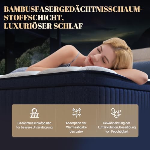 Avenco Matratze 140×190, Taschenfederkernmatratze, gewaschene Latex- und hochelastische Schaumstoffmatratze, bilaterale Verstärkung, CertiPUR-US Zertifikat