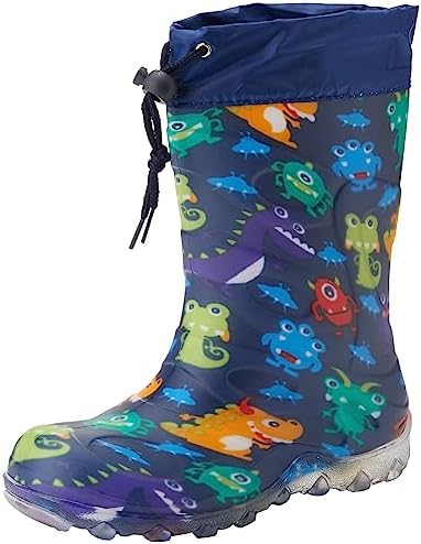 Rain boots from Beck – flashing boots, waterproof and colourful. Waterproof outdoor boots with warm lining for boys. This keeps your feet nice and warm. The simple design with colourful monsters is spiced up by the great flashing sole. Not only looks cool, but also provides safety in the dark. The non-slip sole and the high-closing shaft with cuff and quick release provide good grip.