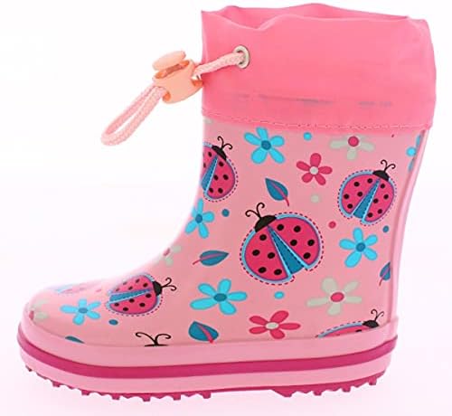 Great rubber boots made of natural rubber for the little ones. The waterproof boot protects against wind and weather and keeps feet dry. Non-slip outsole with profile for optimal foot safety. Textile inner lining and removable sole provide ideal comfort. The cuff with drawstring also protects against moisture from above. The cute motif on this pink boot makes girls’ hearts beat faster.