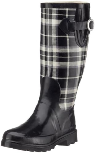 Women’s rubber boots simple and elegant. Classic, simple rubber rubber wellies. A great tall boot in black and white with an elegant check pattern and buckle. The non-slip sole ensures a firm grip and a comfortable stand. Keeps feet dry in the rain, but is also perfect for everyday use.