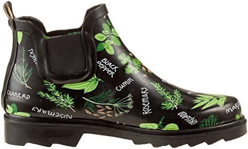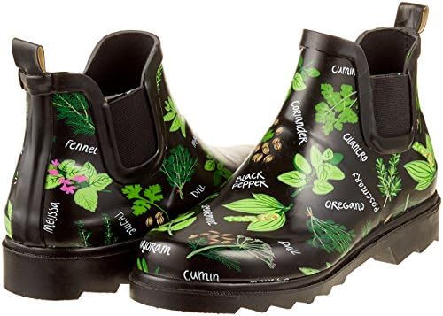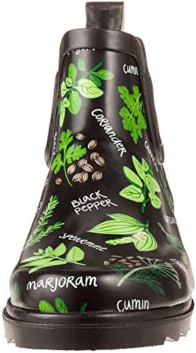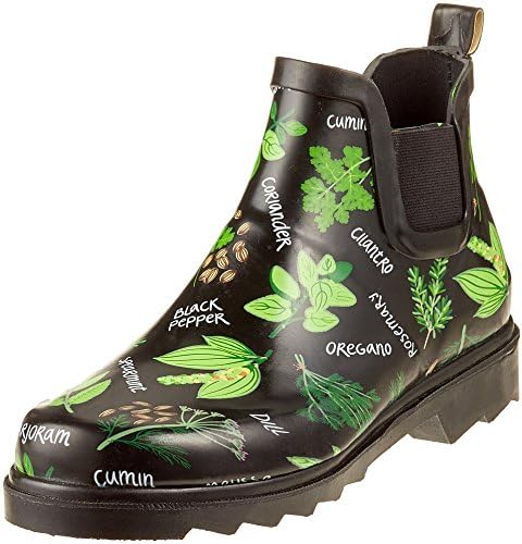 Women’s rain boots for the garden | beck.shoes. Natural rubber waterproof wellington boots with a comfortable fit. Smart herb and spice print ensures a cheerful mood. Side rubber inserts make it easy to put on and take off. The thicker rubber sole ensures comfort. Perfect for walking, gardening or leisure.