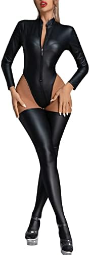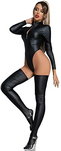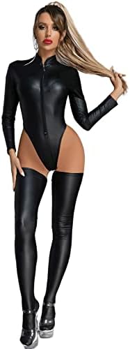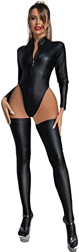 Women’s Wet Look Bodysuit Sexy PU Leather