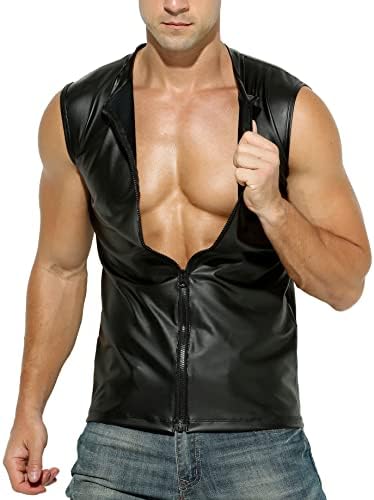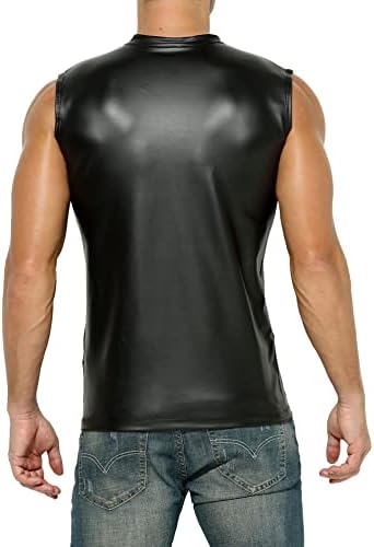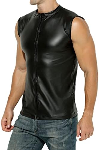 Latex-like men’s shirt 1/2 sleeve faux leather shirt with transparent cut-outs on the side