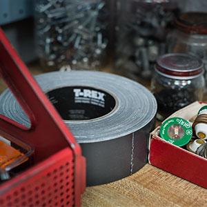 The T-Rex duct tape fixes, repairs and attaches various items in the home and garden: the broken tent pole, the torn inflatable boat and even shoes can be revived