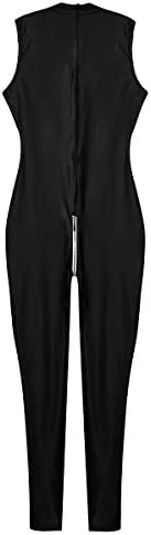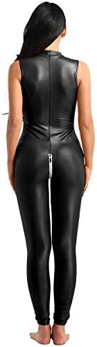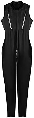 TiaoBug Women’s Wetlook Bodysuit Patent Leather Full Body Suit with Full Zip Crotch Corset Top Turtleneck Jumpsuit Overalls Clubwear